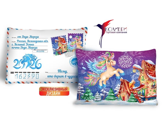 Подарок Подушка-конфетница "Сказочный Пегас". Вес: 1000 гр. Габариты: 43х32х7 см.
